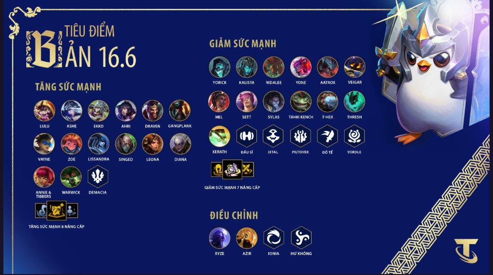 Bản cập nhật DCTL 16.6: Phiên bản 16.6 giúp các tướng Mở Khóa dễ tiếp cận hơn, từ đó tăng tính linh hoạt đội hình và điều chỉnh cân bằng để phù hợp với sự thay đổi này.